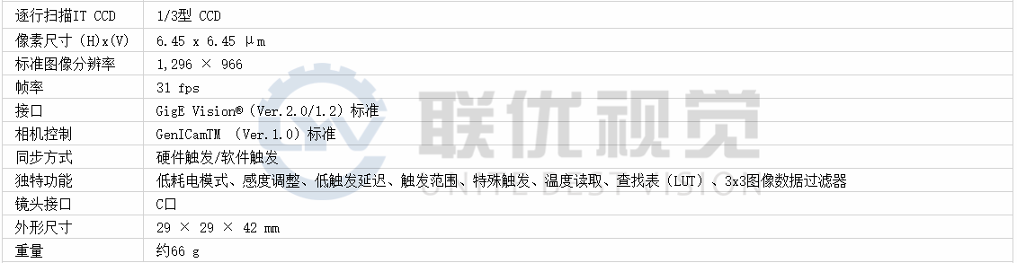 ●XCG-C130(黑白)1/3英寸CCD,分辨率為1280 (H) x 960 (V),幀速率為31幀/秒,并支持GigE Vision 2.0 / 1.2,因?yàn)镚igabit Ethernet具有PoE功能。