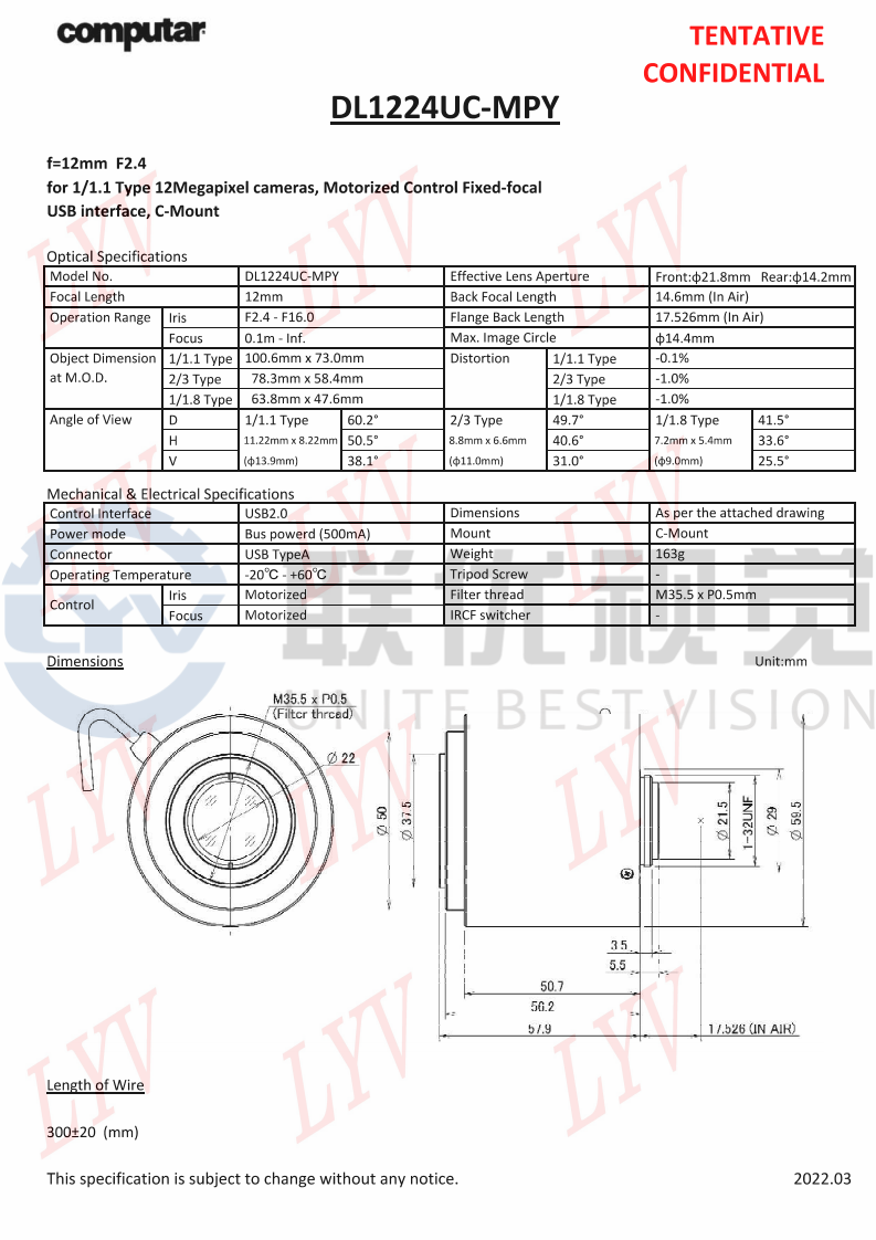 全新電動(dòng)鏡頭,可通過(guò) USB 供電和控制(適用于 I2C 版本)