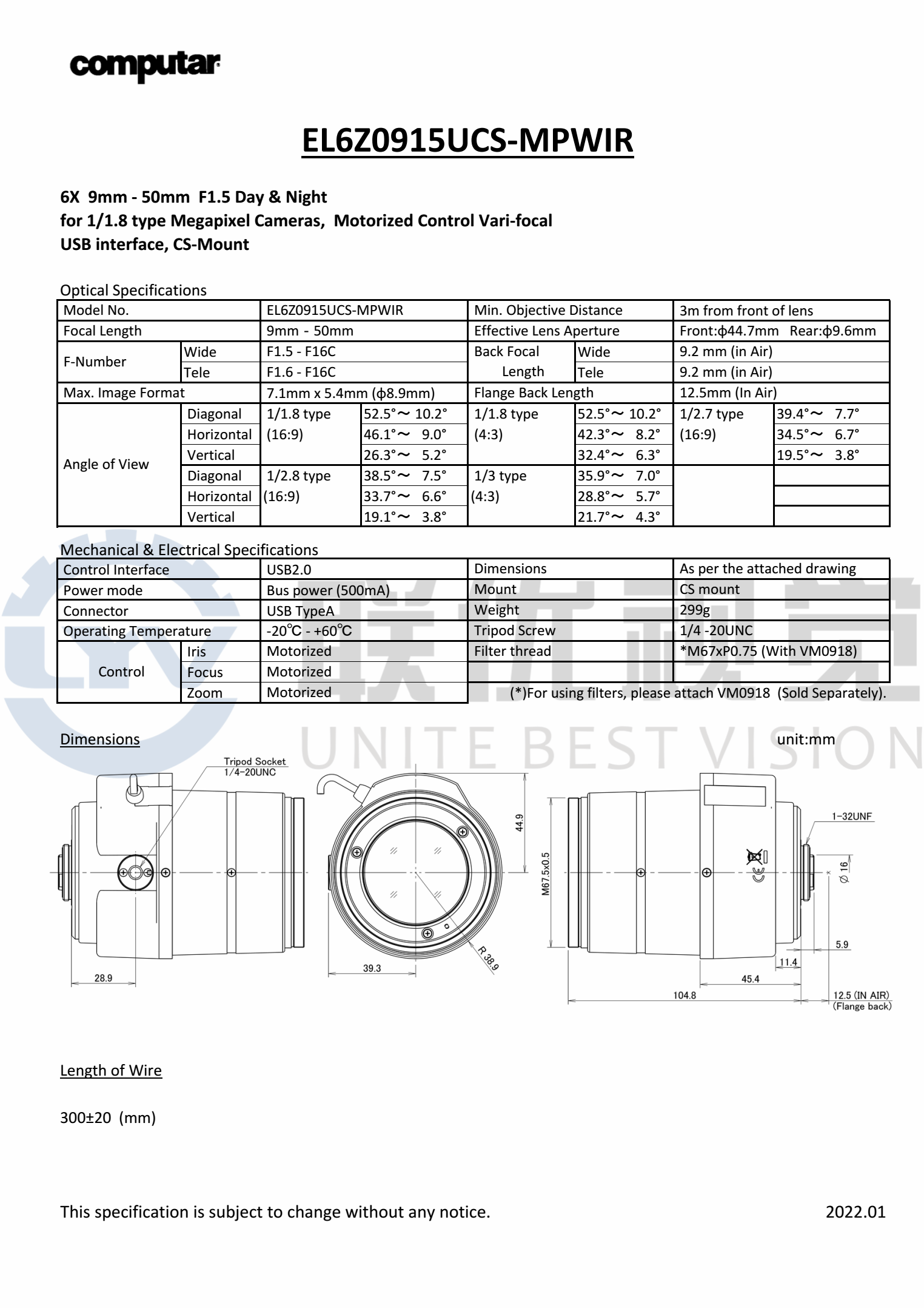 全新電動鏡頭,可通過 USB 供電和控制(適用于 I2C 版本)