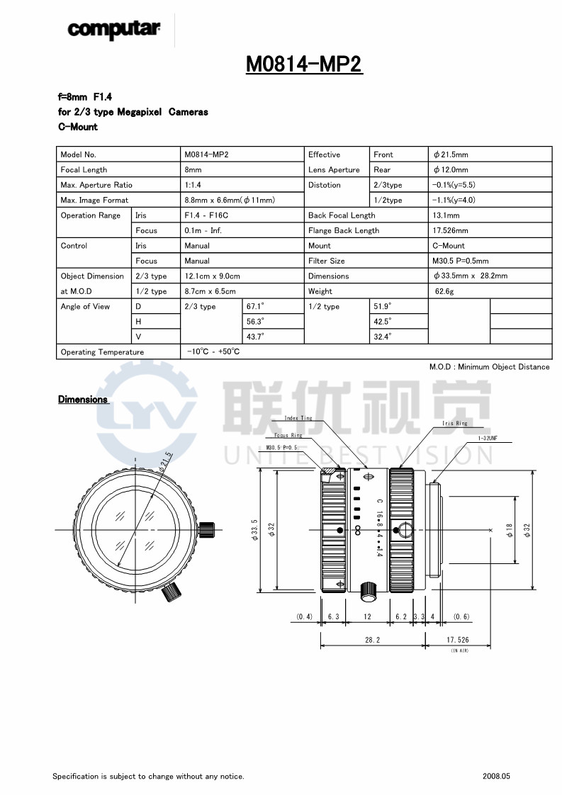 ●具有焦點和光圈鎖定調節(jié)鏍釘;
