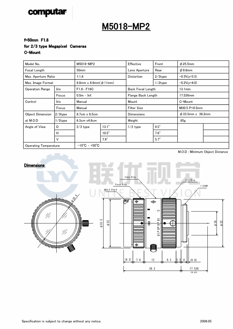 Computar 2/3英寸 M5018-MP2