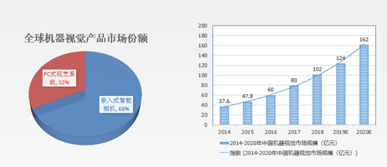 機(jī)器視覺(jué)系統(tǒng)通常分為基于PC的視覺(jué)系統(tǒng)(工業(yè)相機(jī)+工業(yè)電腦)和基于嵌入式智能相機(jī)(智能相機(jī))的視覺(jué)系統(tǒng)。嵌入式智能相機(jī)系統(tǒng)(智能相機(jī))憑借體積小,安裝方便,穩(wěn)定性好等優(yōu)勢(shì)占據(jù)了較大的市場(chǎng)份額。