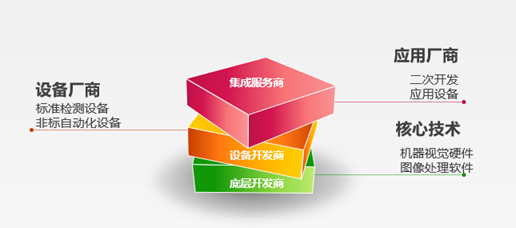 機(jī)器視覺(jué)產(chǎn)業(yè)鏈可以分為底層開(kāi)發(fā)商(視覺(jué)光源、工業(yè)鏡頭、工業(yè)相機(jī)、圖像采集卡、圖像處理軟件等)、設(shè)備開(kāi)發(fā)商(測(cè)量設(shè)備和非標(biāo)檢測(cè)自動(dòng)化專(zhuān)機(jī)等)和集成服務(wù)商(二次開(kāi)發(fā)),其中底層圖像處理軟件是最核心壁壘。目前國(guó)內(nèi)機(jī)器視覺(jué)行業(yè)中底層軟件、高端工業(yè)鏡頭以及高端工業(yè)相機(jī)領(lǐng)域還基本被國(guó)外品牌壟斷,低端鏡頭和工業(yè)相機(jī)領(lǐng)域逐漸有國(guó)產(chǎn)廠商涉及,視覺(jué)光源國(guó)內(nèi)競(jìng)爭(zhēng)比較激烈,系統(tǒng)集成和視覺(jué)專(zhuān)用設(shè)備發(fā)展迅速。